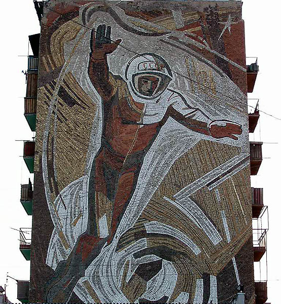 Караганда. Мозаика «Космонавт» на одном из домов.