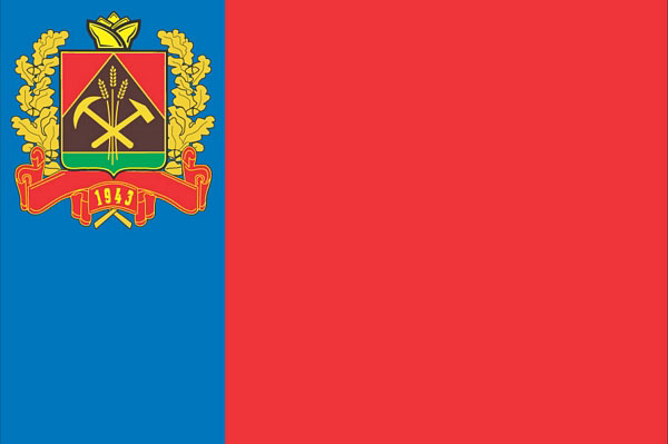 Флаг Кемеровской области, принятый 7 июня 2002 года. В верхней части синей полосы — герб Кемеровской области.