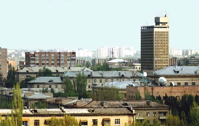 Луганск. Панорама центральной части города. Справа: гостиница «Луганск».