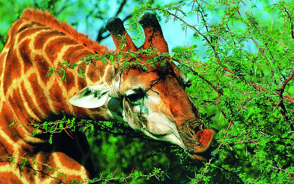 Голова масайского жирафа (Giraffa camelopardalis tippelskirchi). Кратер Нгурдото, Северная Танзания. Фотография В. В. Климова.