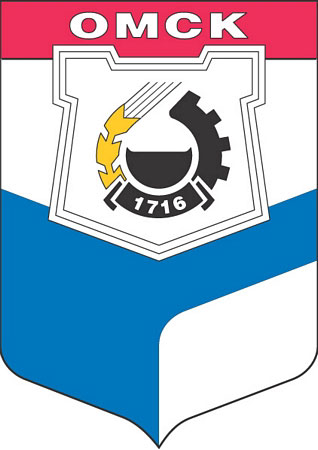 Герб Омск, принятый 22 июня 1973 года. В центре герба золотистый колос, переходящий в часть шестерни, что символизирует союз рабочего класса и крестьянства. Их внутренняя линия образует колбу с нефтью. Композиция символизирует Омск, как город развитого машиностроения, нефтехимии и науки, центр сельскохозяйственной области. Многоугольник у места слияния рек — указывает на историческое прошлое города, возникшего как крепость в Сибири. На декоративной ленте — дата возникновения Омска.