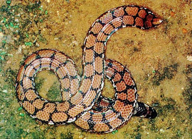Пятнистая змея (Cylindrophis maculatus) относится к семейству цилиндрических змей. Фотография В. В. Климова.
