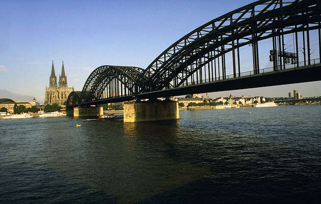 Кельн. Мост Гогенцоллрнов через Рейн. который ведет к знаменитому Кельнскому собору.
