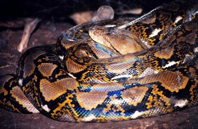 Сетчатый питон (Python reticulatus) одна из самых крупных змей в мире. Фотография В. В. Климова.