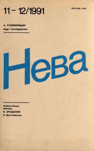 Обложка литературного журнала «Нева», издающегося в Ленинграде (Санкт-Петербурге) с 1955 года.