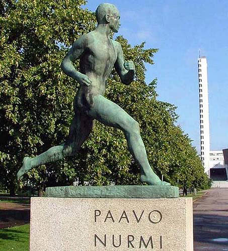 Вяйне Аалтонен. Памятник стайеру Пааво Нурми на Олимпийском стадионе в Хельсинки. На заднем плане башня Олимпийского стадиона.