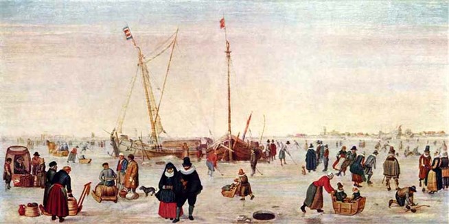 Хендрик Аверкамп. Зимний пейзаж с конькобежцами. Около 1620 года. Музей Бойманса-ван-Бейнингена в Роттердаме.