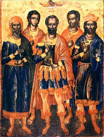 Севастийские мученики Евстратий, Авксентий, Евгений, Мардарий и Орест. Икона XV в. Хумор. Румыния.