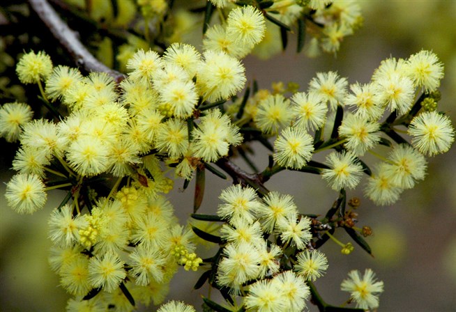 Соцветия обыкновенной, или ранней австралийской акации (Acacia genistifolia). Тасмания.