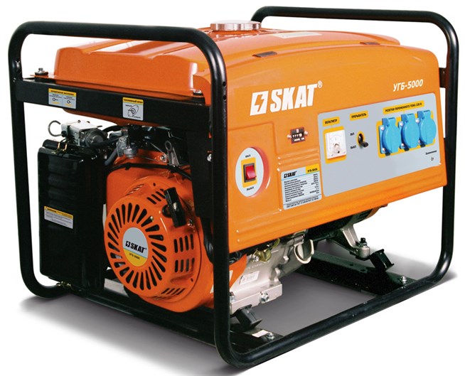 Бензиновый генератор SKAT УГБ 5000 с ручным запуском может служить в качестве постоянного автономного или резервного источника электропитания выносного типа на стройплощадке, автозаправке, в загородных домах, для спасательных служб. Генератор УГБ 5000 предназначен для выработки однофазного электрического тока напряжением 220 В с частотой 50 Гц.