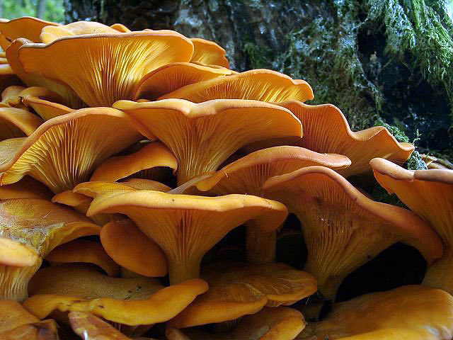 Омфалотус (Omphalotus illudens), ядовитый, семейство шампиньоновые, или агариковые грибы.