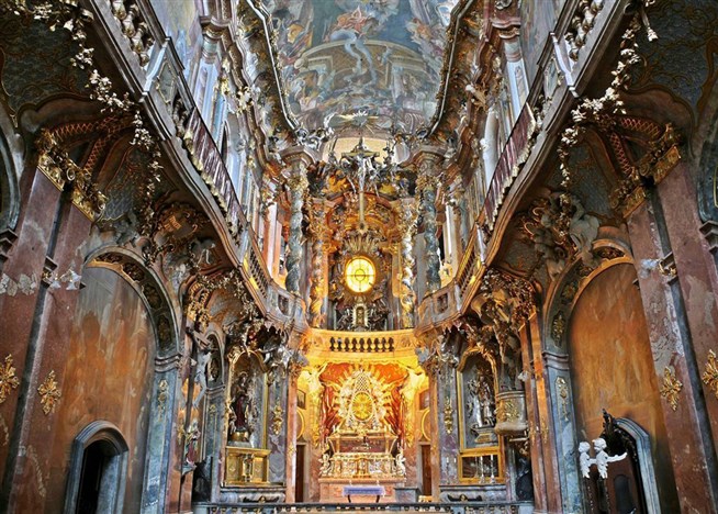 Азамкирхе (церковь святого Иоанна Непомука). Интерьер. Мюнхен, Зендлинген-штрассе, 32. Церковь была построена братьями Азам в начале 18 века в стиле южнонемецкого барокко как семейный храм архитекторов.