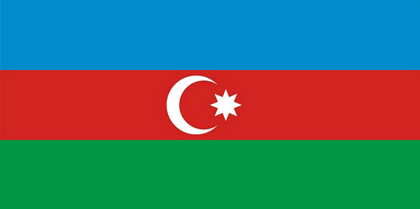 Флаг Азербайджана состоит из трех равных по ширине горизонтальных полос. Верхняя полоса ― голубого, средняя полоса ― красного, нижняя полоса ― зелёного цвета. В середине красной полосы по обеим сторонам флага белым цветом изображены полумесяц с восьмиконечной звездой. Соотношение ширины флага к его длине составляет 1:2.