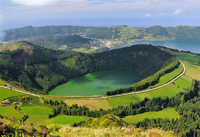 Азорские острова, остров Сан-Мигел, озеро Сантьяго.