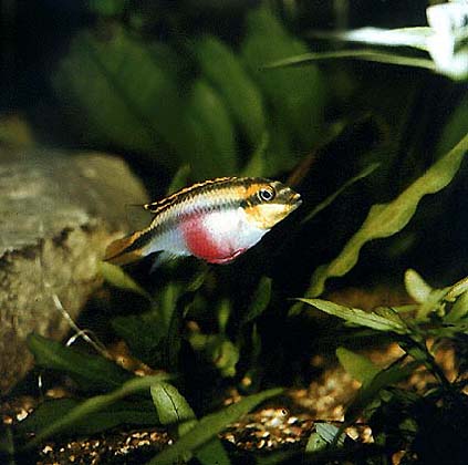 Обыкновенный попугай (Pelvicachromis pulcher) из семейства цихловых.