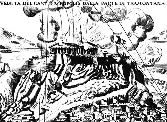 Бомбардировка Акрополя. Гравюра. 17 в.