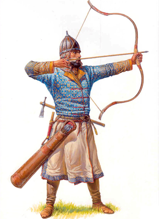Знатный лучник-алан. Дмитриевский археологический комплекс, катакомба № 55. Реконструкция художника О. Федорова.