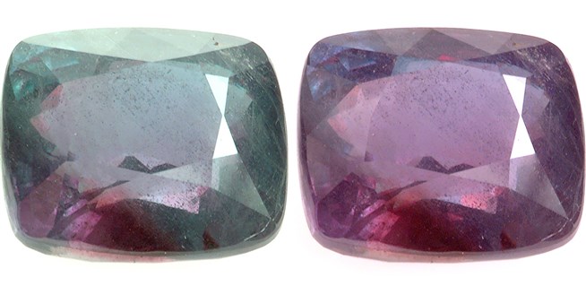 Александрит (разные условия освещения)