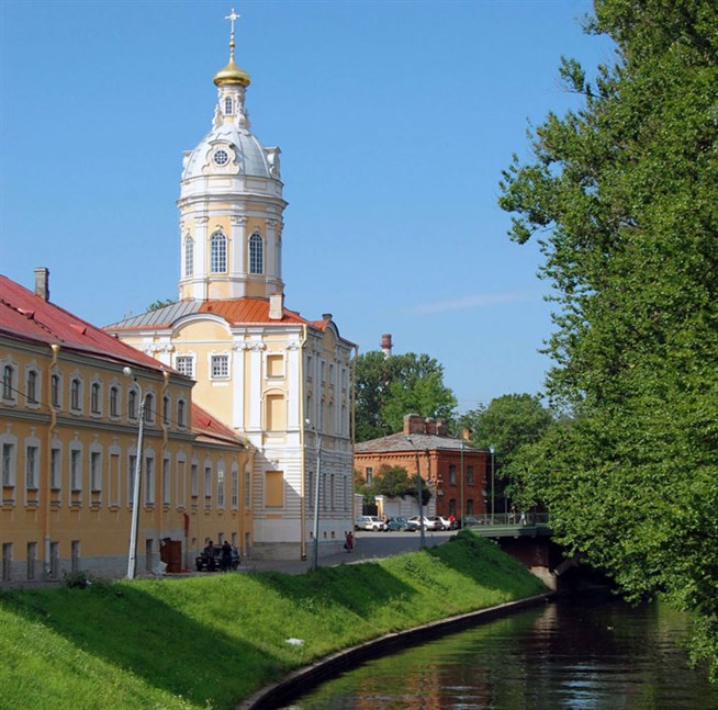 Вид на Александро-Невскую лавру с моста через реку Монастырку.