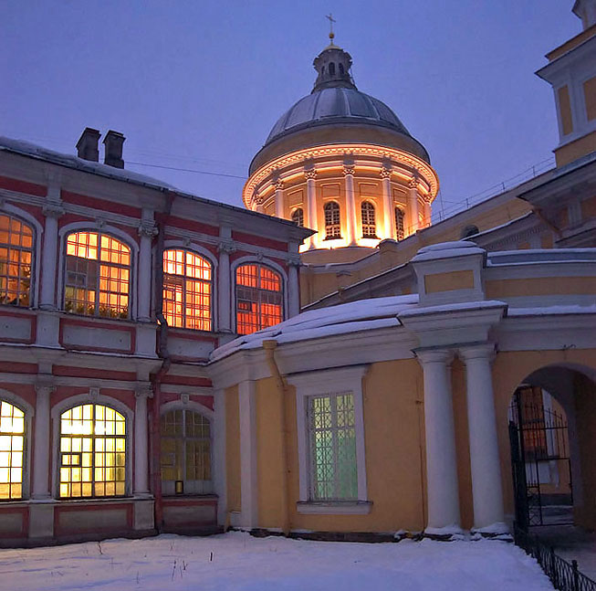 Вход в Александро-Невскую лавру (вверху купол Троицкого собора).
