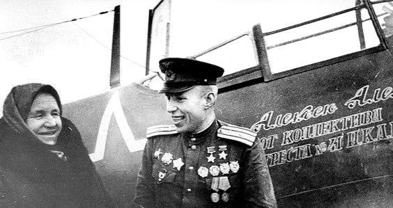 А. В. Алелюхин у самолета Ла-7, названного именем летчика.