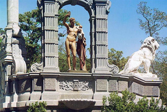 Алупка. Парковая скульптура «Гермес и Дионисом». Около 1905-1915 годов. Фотография Сергея Михайловича Прокудина-Горского (1863-1944).