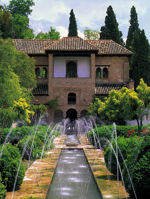 К дворцовому комплексу тесно прилегают сады Хенералифе, жемчужиной которых заслуженно считается Дворик оросительного канала (Патио-де-Асеквийя).