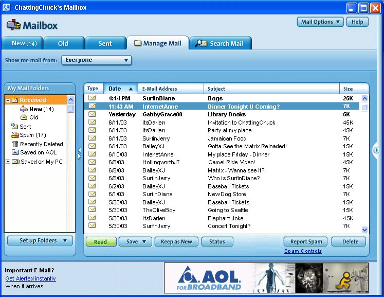 Америка онлайн. Интерфейс почтовой программы Mailbox.
