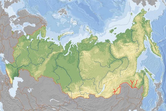 Ареал амурского осетра на территории России. Амурский осетр (Acipenser schrenckii, Brandt, 1869) - рыба семейства осетровых (зейско-буреинская популяция). Этот вид внесен в Международную Красную книгу и Красную книгу России, как находящийся под угрозой исчезновения.