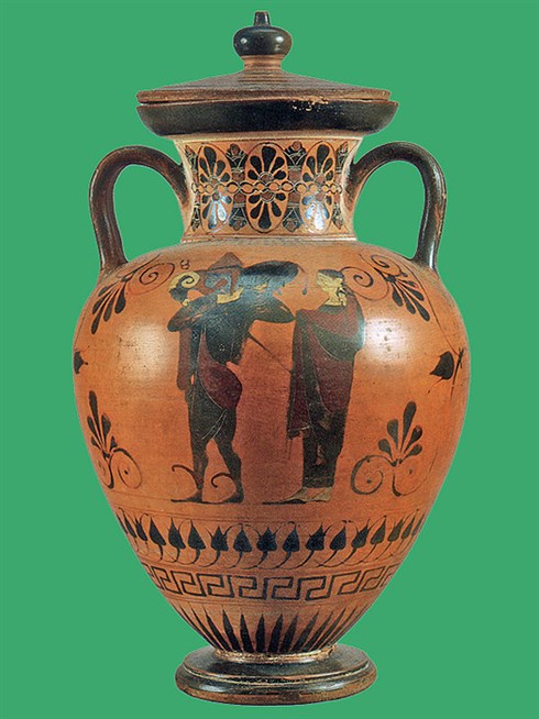 Гермес и Мойра. Чернофигурная амфора. Эрмитаж, Петербург.