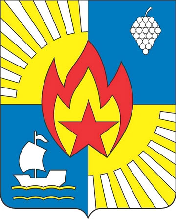 Герб Анапы, принятый 29 августа 1973 года. На щите в нижнем левом углу изображен древний парусник, напротив — гроздь винограда и виноградный лист. В центре герба на фоне солнца пионерский костер и звездочка. Цвета герба золотисто-желтый, сине-зеленый, ярко-красный (пурпурный).