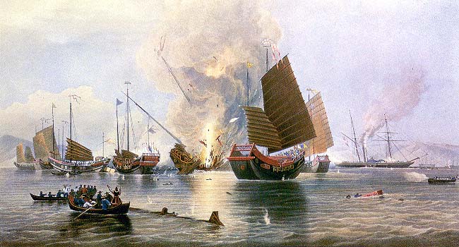 Китайский флот, состоявший из джонок, несмотря на свою многочисленность, был беззащитен в столкновениях с бронированными английскими пароходами.