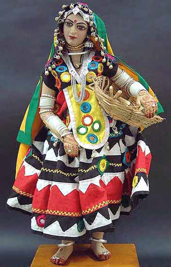 Андхра-Прадеш. Банджарцы из Андхра-Прадеша и ламбадисы из Раджастхана признаются цыганскими народностями. Костюм женщины-банджарки состоит из широкой юбки -гхагхры, сшитой из грубой хлопчатобумажной ткани красного, черного и белого цвета, расшитой и украшенной кусочками зеркал. Банджарки тратят почти год на пошив и украшение юбки и надевают ее только на праздники. Очень редко женщина снимает браслеты, сделанные из металла и слоновой кости. Тяжелые серебряные подвески закрепляются по обеим сторонам распущенных волос.