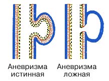 Аневризма сосуда. Истинная аневризма образована всеми оболочками сосуда, наблюдается преимущественно при атеросклерозе и сифилисе. Ложная аневризма образуется чаще при ранении сосуда.
