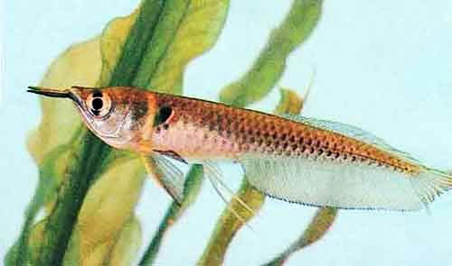 Молодая особь араваны (Osteoglossum bicirrhosum).