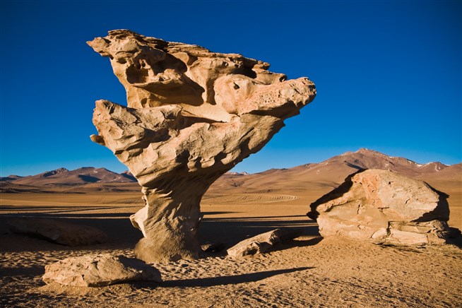 Арболь-де-Пьедра («Каменное дерево») в национальном заповеднике Эдуардо Авароа — это вулканическая горная порода, похожая на дерево. Пустыня Силоли. Боливия. 2007 год. Фото: Pedro Szekely, flickr.com