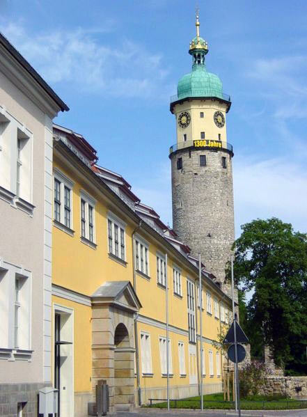 Арнштадт. Здание районной администрации. На заднем плане — башня Нейдектурм.
