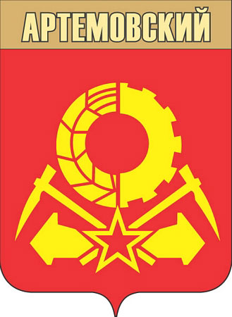 Герб города Артемовский, принятый 27 января 1967 года. Фигуры на гербе символизируют машиностроение, энергетику, добычу угля, железнодорожный транспорт и сельское хозяйство.