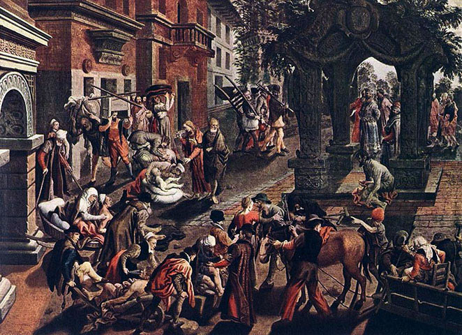 Питер Артсен. Апостолы Петр и Иоанн, исцеляющие больных. 1545. Эрмитаж, Петербург.