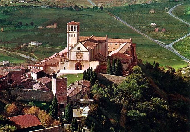 Ассизи. Панорама монастырского комплекса. В центре — Собор Св. Франциска.