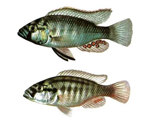 Астатотиляпия Бертона. Вверху самец, внизу самка.