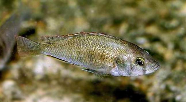 Самка астатотиляпии Брауна светлого серовато-оливкового окраса.