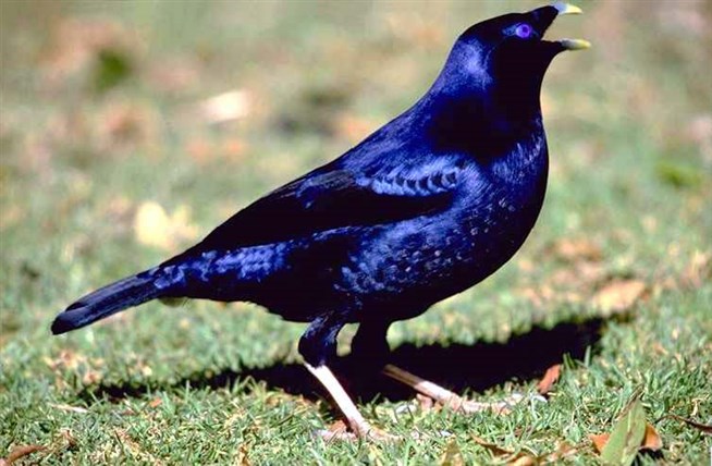 Самец атласного шалашника (Ptilonorhynchus violaceus).