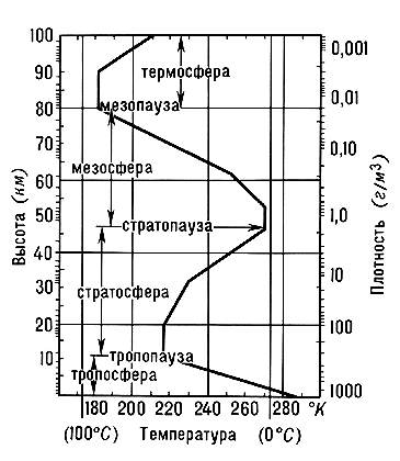 Атмосфера Земли. Вертикальное распределение температуры и плотности.