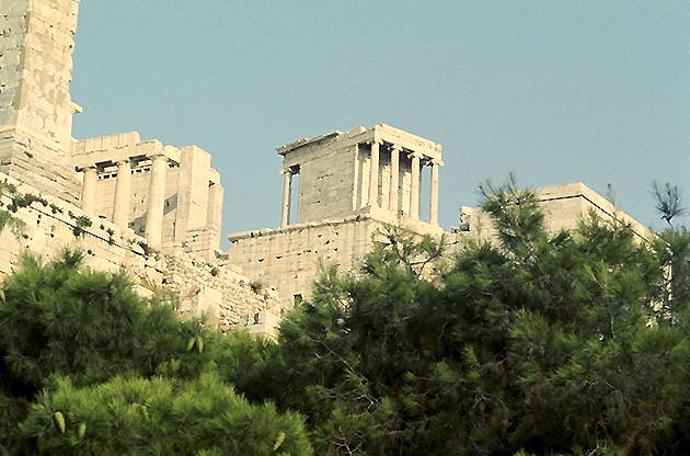 Афины. Акрополь. Храм Ники Аптерос. Во времена турецкого господства храм был разобран и употреблен для строительства укреплений; в конце 19 в. из сохранившихся фрагментов был выложен заново.