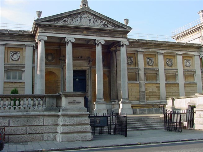 Ашмола музей. Главный вход в здание музея, построенное в 1845 в стиле неоклассицизма.