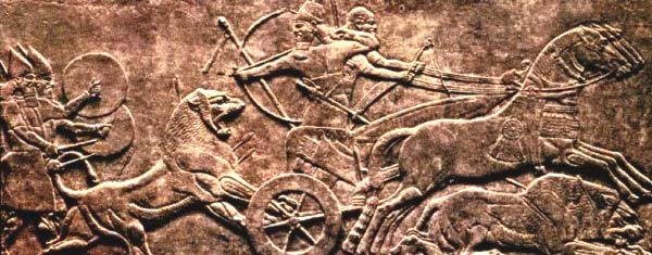 Охота на львов. Рельеф из дворца царя Ашшурнасирпала II в Кальху. 883-859 гг. до н. э. Британский музей, Лондон.