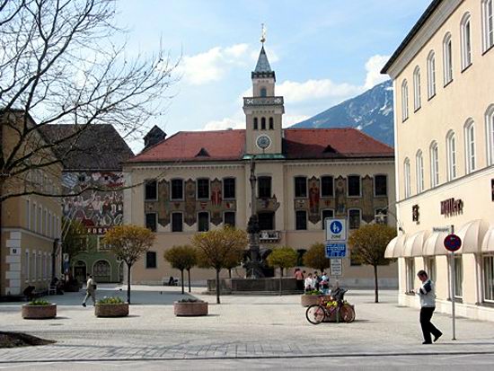 Бавария. Ратушная площадь курортного городка в Бад-Райхенхале.