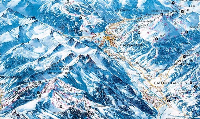 Схема горнолыжных трасс курорта Бад-Гаштайн в Австрии.