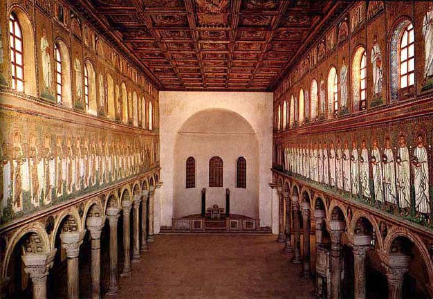 Интерьер византийской базилики — церкви Святого Аполлинария Нового в Равенне.